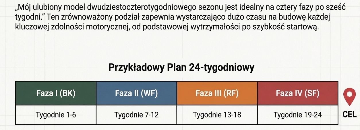 - Kluczowa dla startu: Faza IV (SF). Musisz być wypoczęty i "obiegany" w tempie startowym.