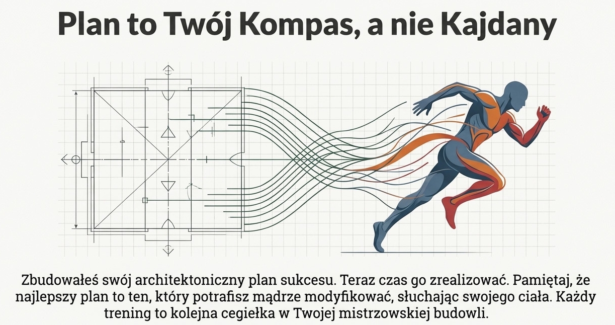 Najlepszy plan to ten, który potrafisz mądrze modyfikować. Choroba, gorszy dzień, stres w pracy – to wszystko jest częścią procesu. Plan ma Ci służyć, a nie Cię zniewolić. Lepiej być lekko niedotrenowanym i zdrowym na starcie, niż wykonać plan w 100%, ale stać na linii startu z kontuzją.