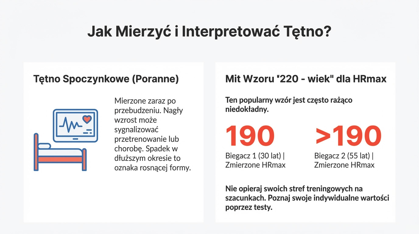 Daniels w swojej książce podaje przykład 30-letniego biegacza elity, którego HRmax wynosiło zaledwie 140! Według wzoru powinien mieć 190. Gdyby trenował na strefach wyliczonych z wzoru, każdy trening byłby dla niego morderczy. Z drugiej strony, wielu 50-latków z łatwością osiąga tętno 180+. Wniosek? Musisz wyznaczyć swoje strefy empirycznie, a nie z kalkulatora.