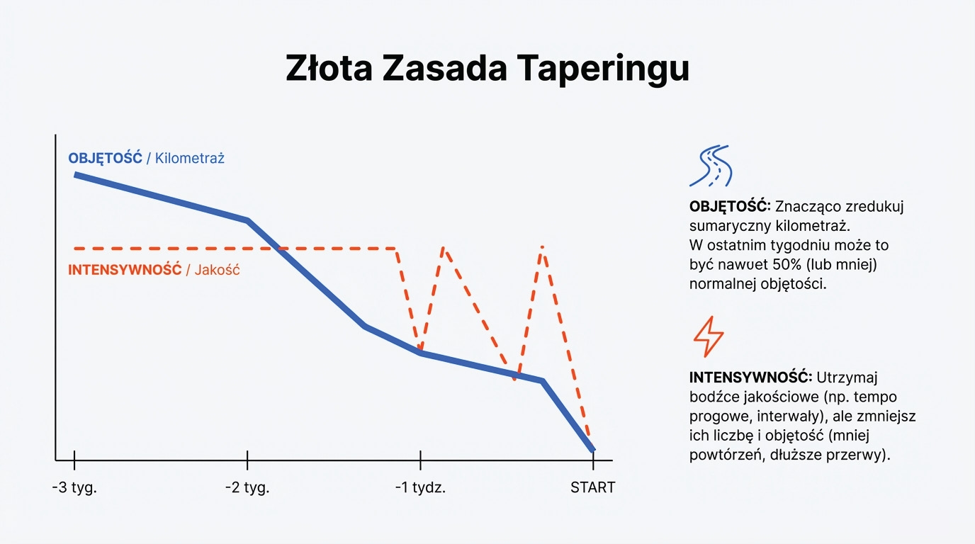 Paradoks tej fazy polega na tym, że aby pobiec szybciej, musisz trenować... mniej. Jack Daniels podkreśla: „To nie jest czas na nadrabianie zaległości. To czas na wydobycie tego, co już wypracowałeś”.