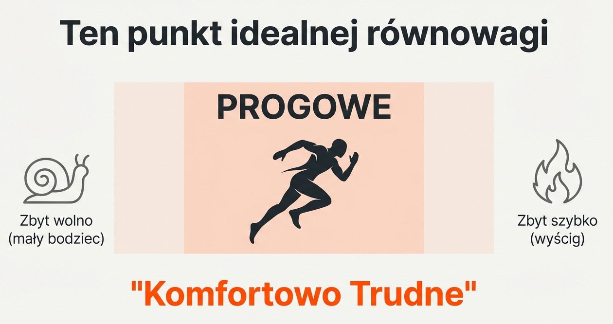 Największym problemem z biegiem progowym jest jego zdefiniowanie w odczuciach. Nie jest to sprint (jak Rytmy), nie jest to walka o tlen (jak Interwały). To specyficzny punkt równowagi.