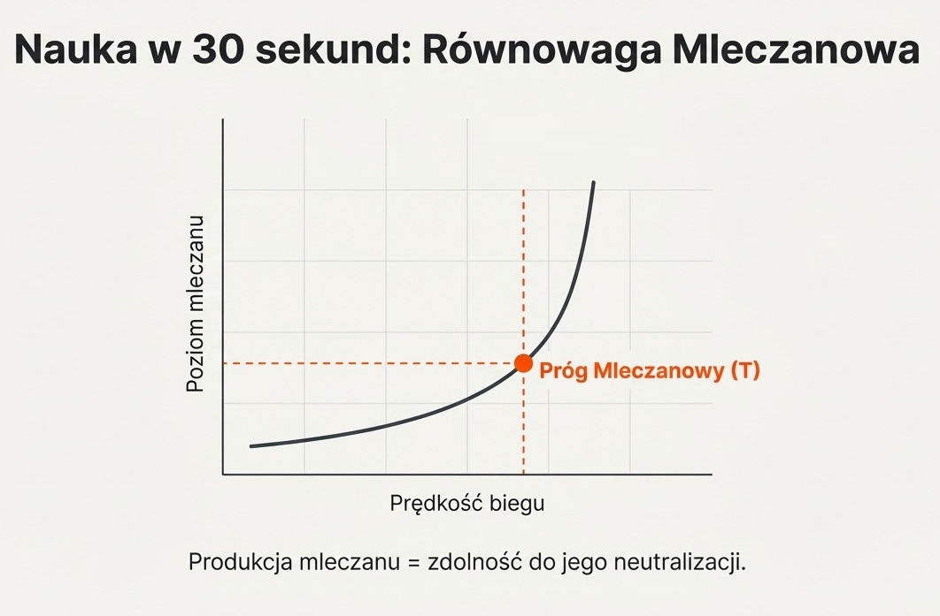 Co dzieje się "pod maską"? Podczas biegu Twoje mięśnie produkują kwas mlekowy (mleczan). Przy niskiej intensywności organizm usuwa go na bieżąco. Jednak w miarę przyspieszania, dochodzisz do punktu, w którym produkcja przewyższa możliwości utylizacji.