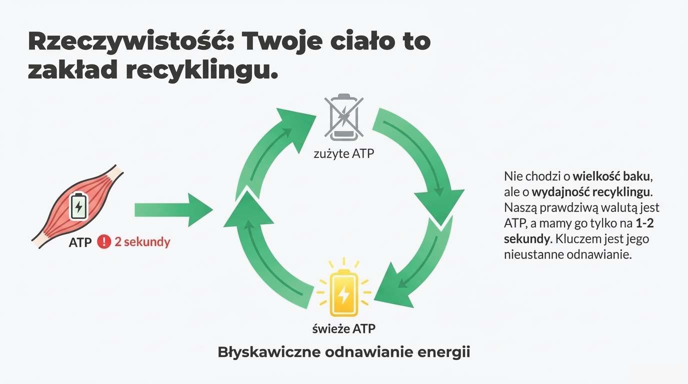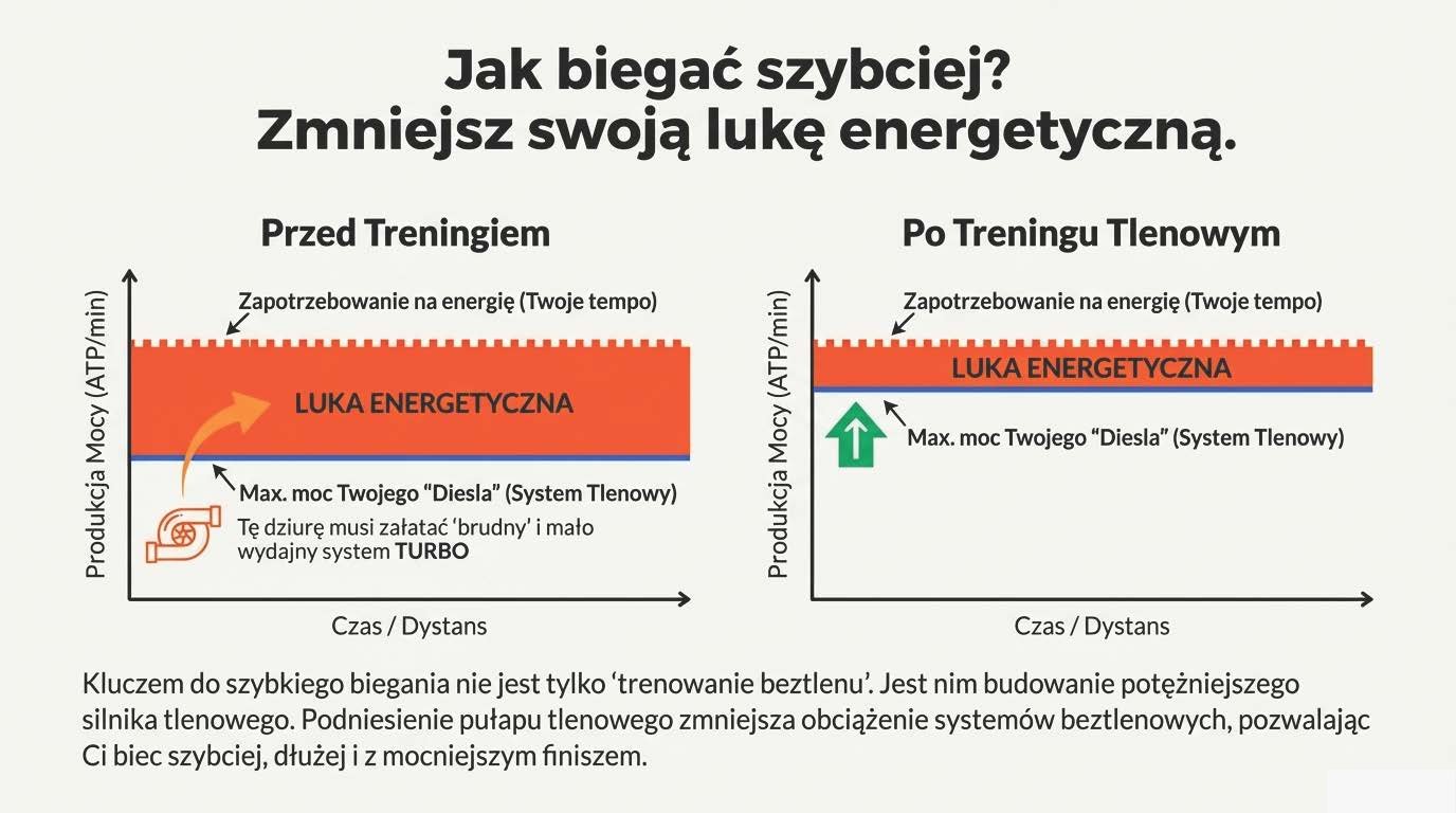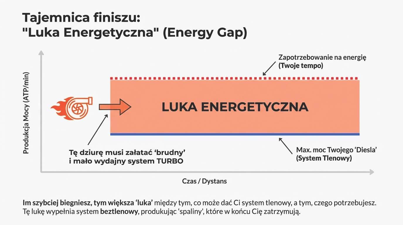 Przecież fizjologicznie Twoja temperatura ciała jest wtedy jeszcze w normie. Nic złego się nie dzieje. Jednak mózg przetwarza dane z otoczenia (wilgotność, skwar) i przeprowadza błyskawiczną symulację: "Jeśli pociągnie tym tempem, za 20 minut zagotuje się i umrzemy. Spowalniam ją TERAZ". Wysyła słabszy sygnał do mięśni, fizycznie ograniczając ich rekrutację, abyś produkował mniej ciepła i bezpiecznie dotarł do mety.